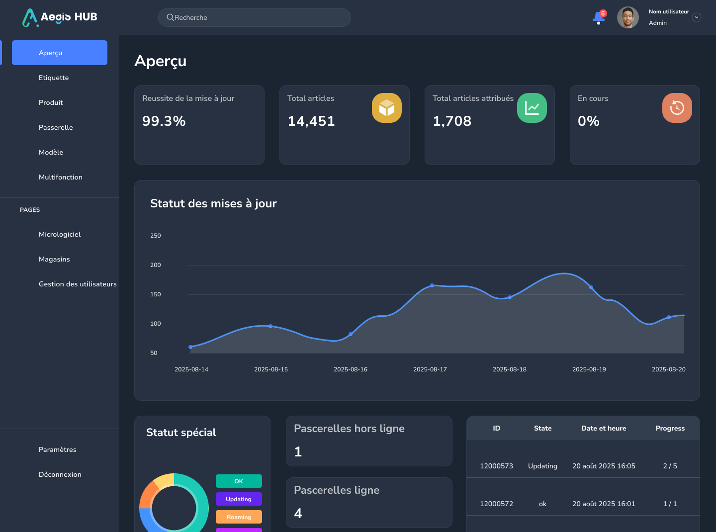 Aegis Hub est notre solution logicielle exclusive, 100 % cloud, conçue pour simplifier et automatiser la gestion de vos étiquettes électroniques, quelle que soit leur marque.